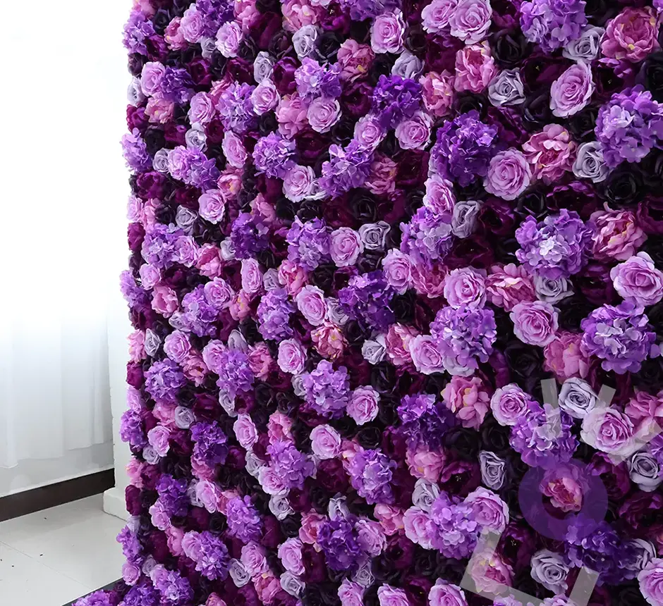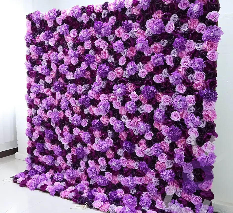Une couleur riche pour une ambiance unique Le mauve symbolise le luxe, la créativité et l'élégance. D'une taille généreuse de 8 pieds par 8 pieds, ce mur floral se compose de roses artificielles de haute densité aux nuances vibrantes et sophistiquées. C'est le choix par excellence pour les mariés qui souhaitent une thématique originale ou pour les entreprises désirant un arrière-plan percutant lors d'un lancement de produit ou d'un gala à Magog ou Bromont.